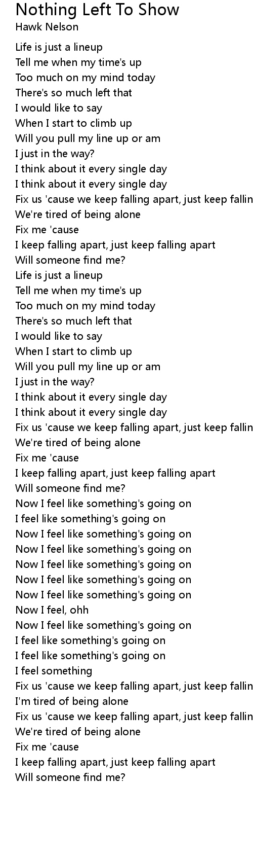 Fix us 'cause we keep falling apart, just keep falling apart |
