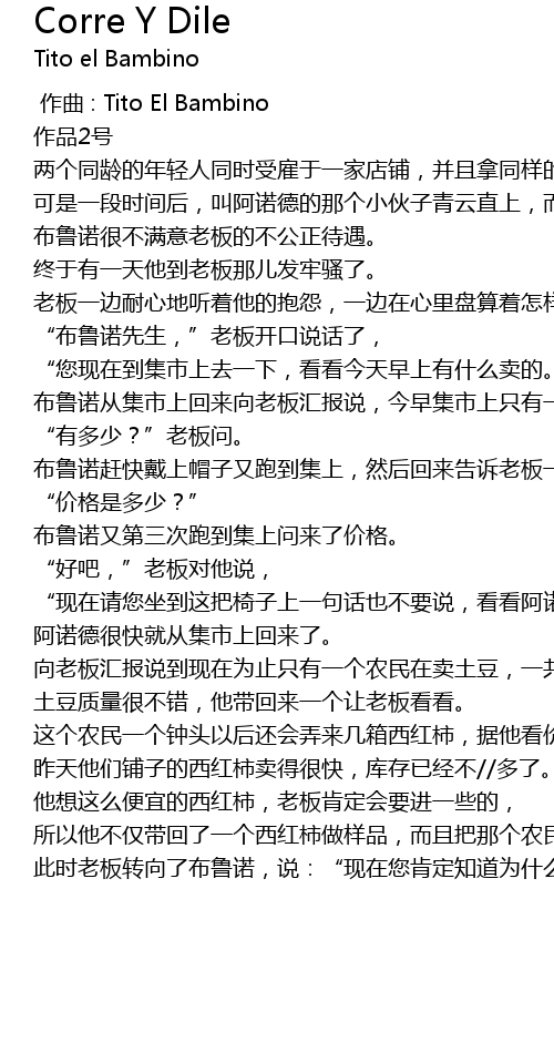 | [01:07.601] | 布鲁诺从集市上回来向老板汇报说,今早集市上只有一个农民拉了一车土豆在卖。 |
