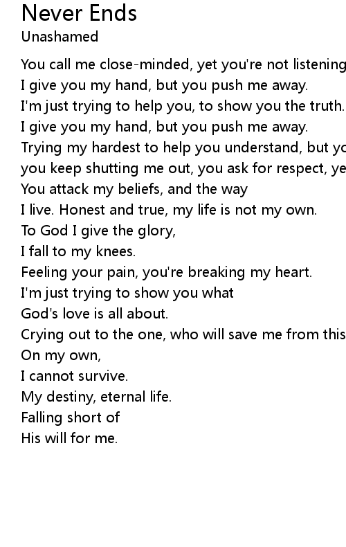 | Trying my hardest to help you understand, but you keep turning your back on me, you keep shutting me out, you ask for respect, yet you give none back. | |