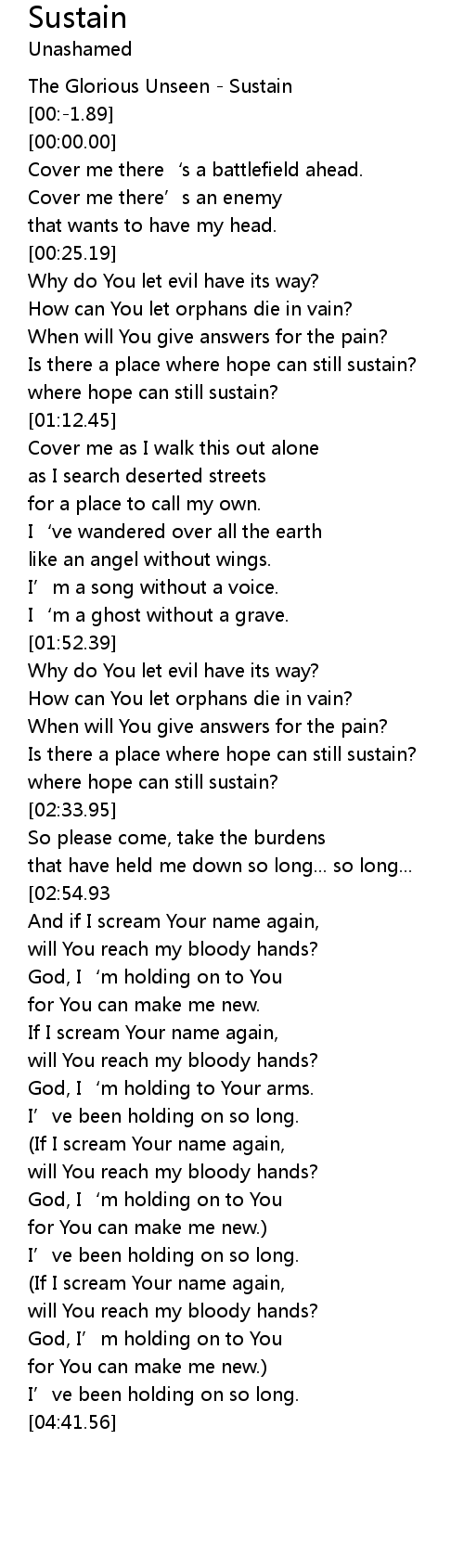 | [00:-2.12] | The Glorious Unseen Sustain |