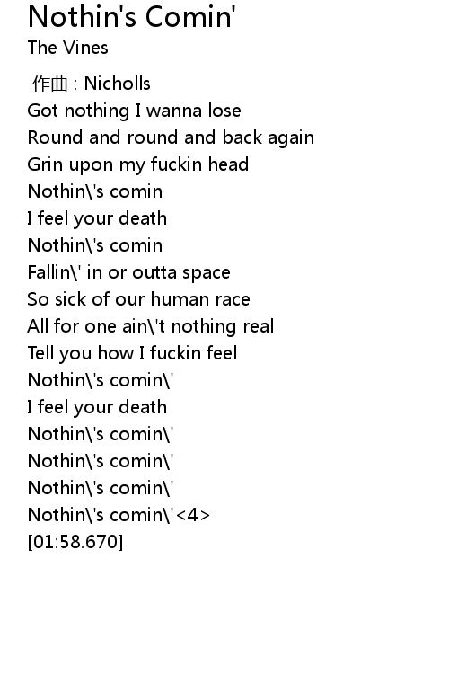 | [01:37.670] | Nothin\'s comin\'<4> |