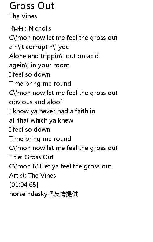 | [00:00.00] | C' mon now let me feel the gross out |