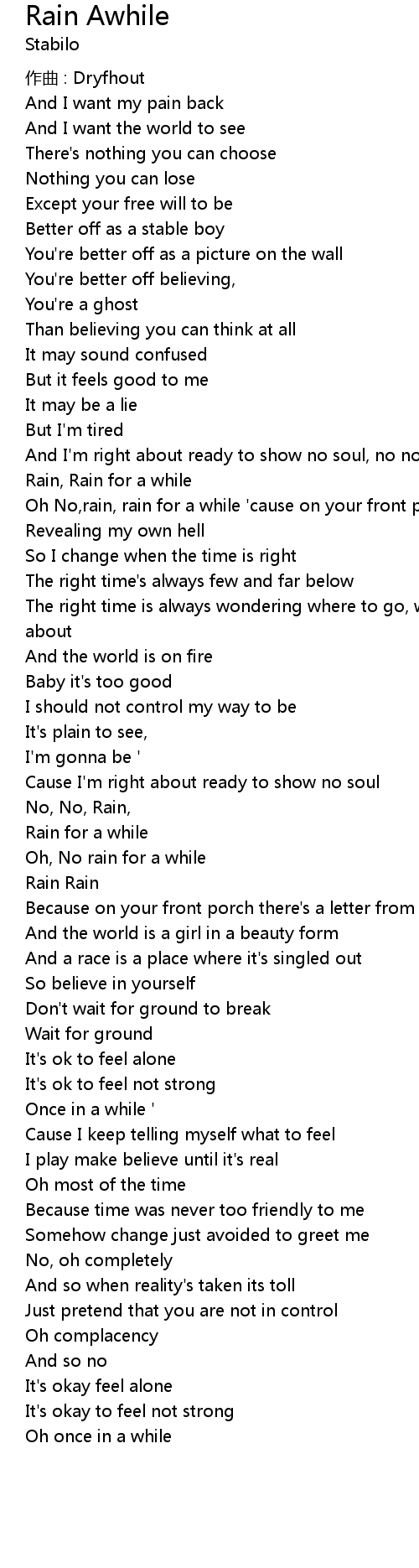 | Oh No, rain, rain for a while ' cause on your front porch is a letter from me | |