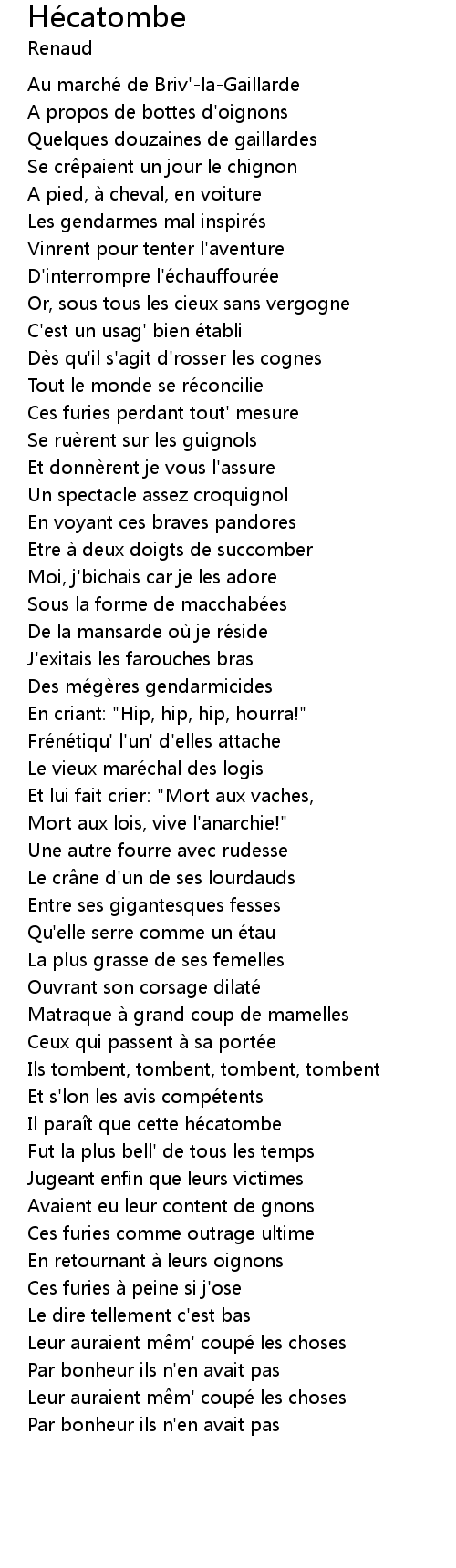 | Song | Hécatombe |