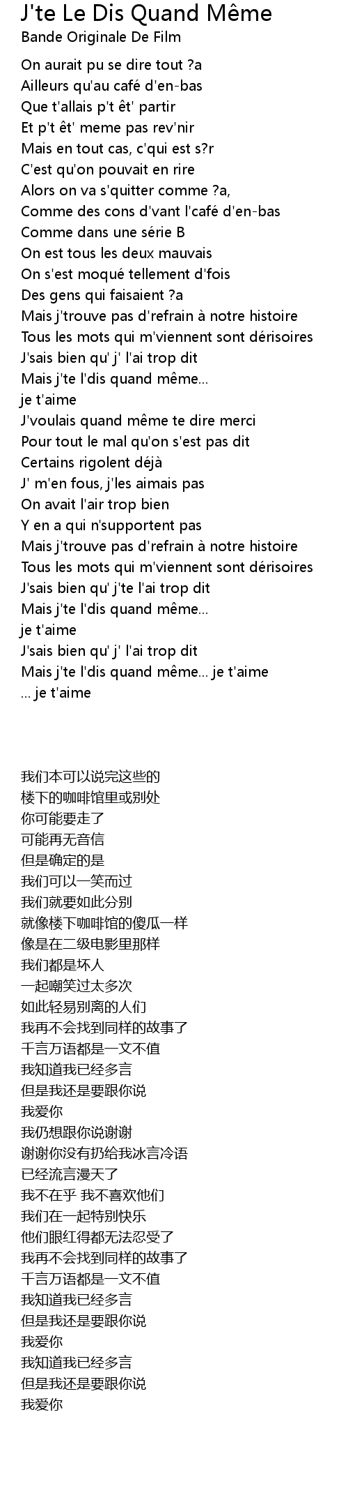 | [03:06.61] | Mais j'te l'dis quand même... je t'aime |