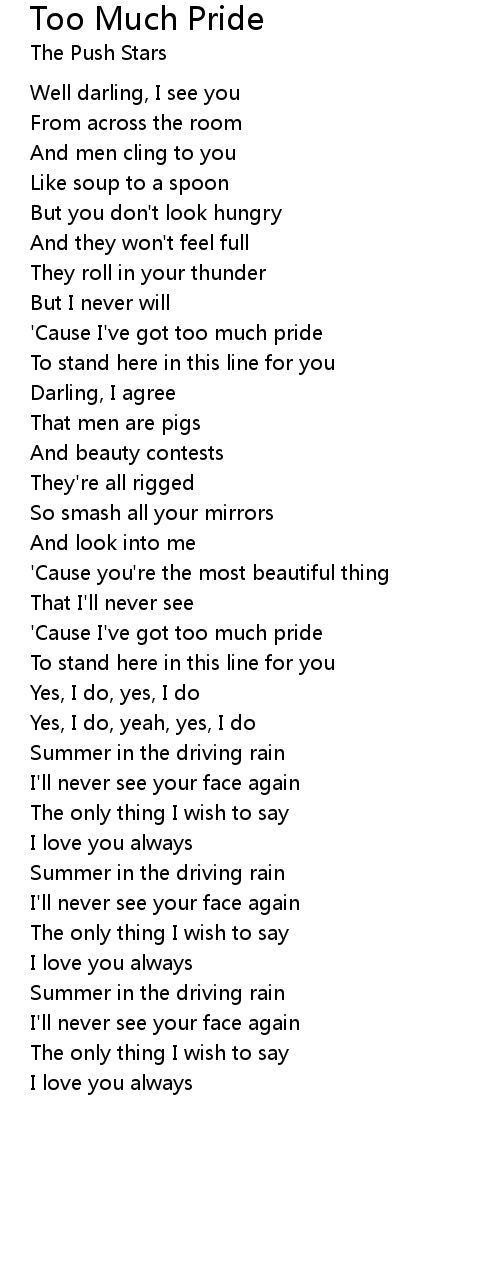'Cause I've got too much pride |