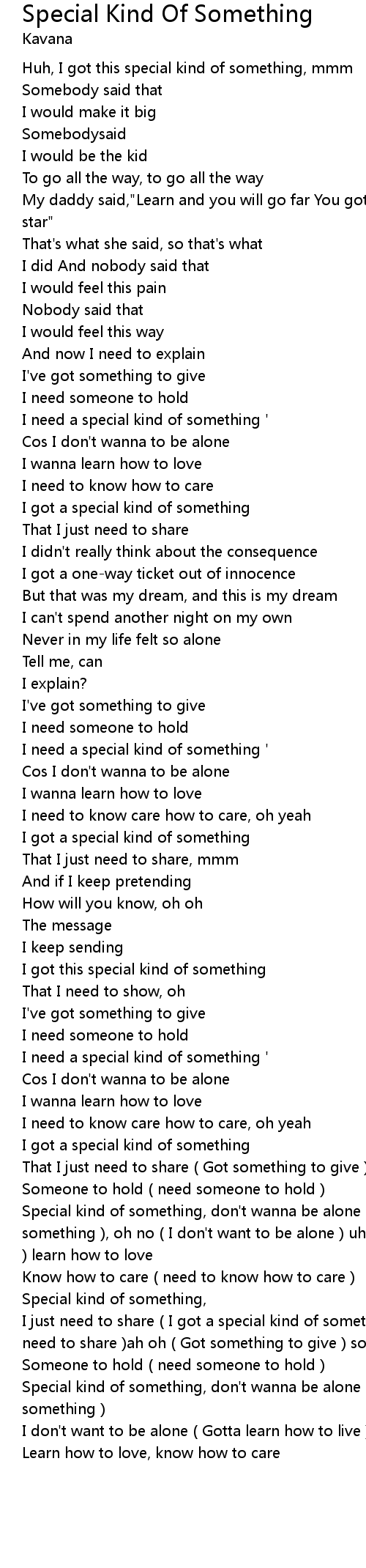 | Special kind of something, don't wanna be alone ( I need special kind of something ) | |