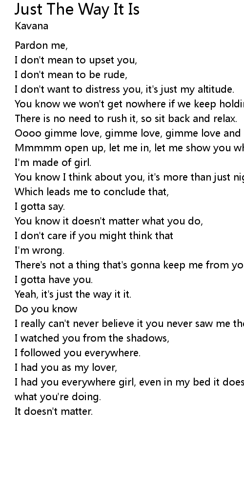 | I had you everywhere girl, even in my bed it doesn't matter, it doesn't matter what you're doing. | |