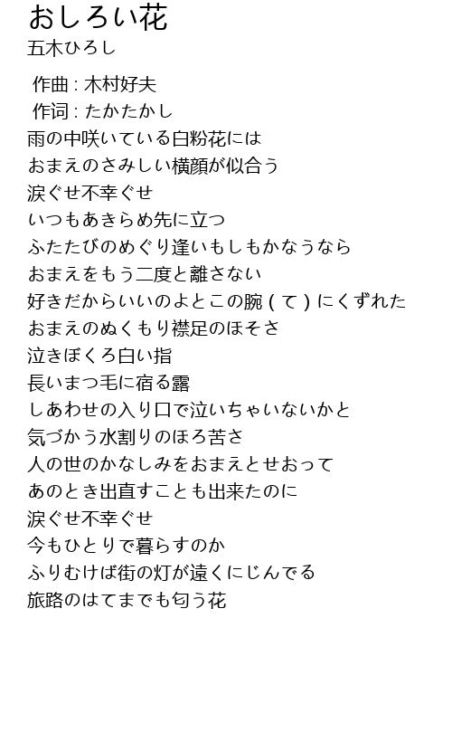 | [01:32.97] | 好きだからいいのよとこの腕(て)にくずれた |