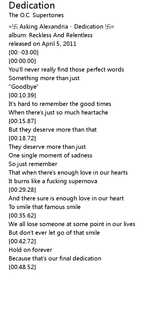 | [00:-06.00] | wàn Asking Alexandria Dedication wàn |