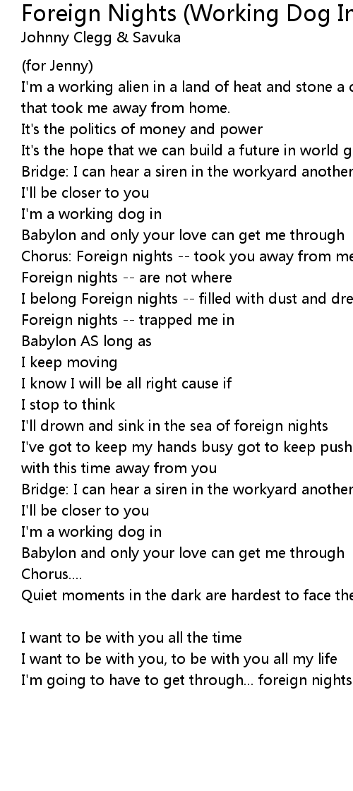 Foreign Nights (Working Dog In Babylon) Lyrics