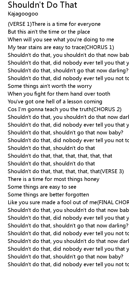 Shouldn't do that, that, that, that, that(VERSE 3) |
