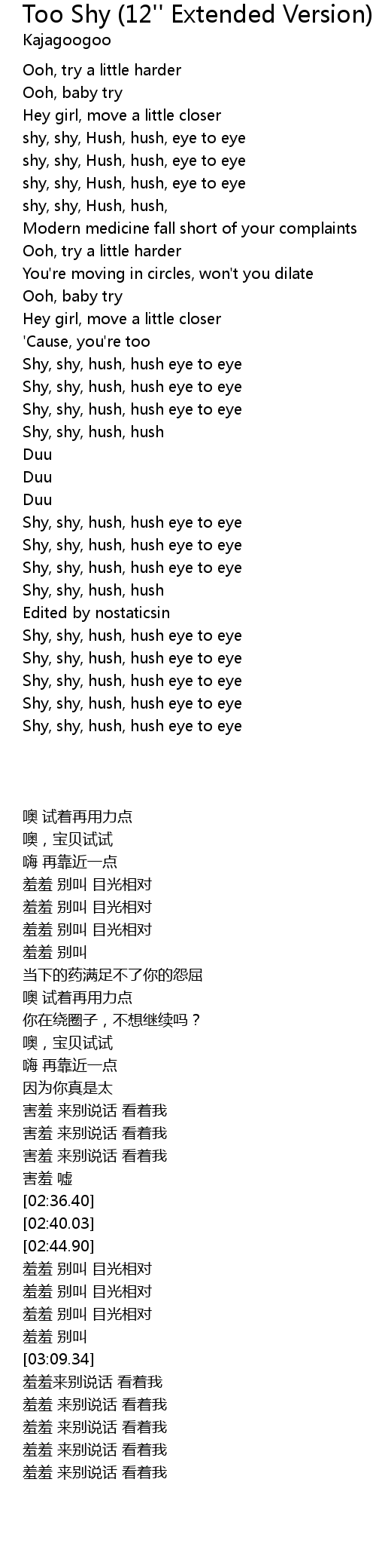 [02:53.89] Shy, shy, hush, hush eye to eye