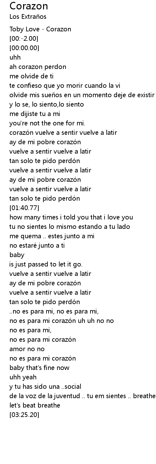 | [02:33.65] | no es para mi corazo n uh uh no no |