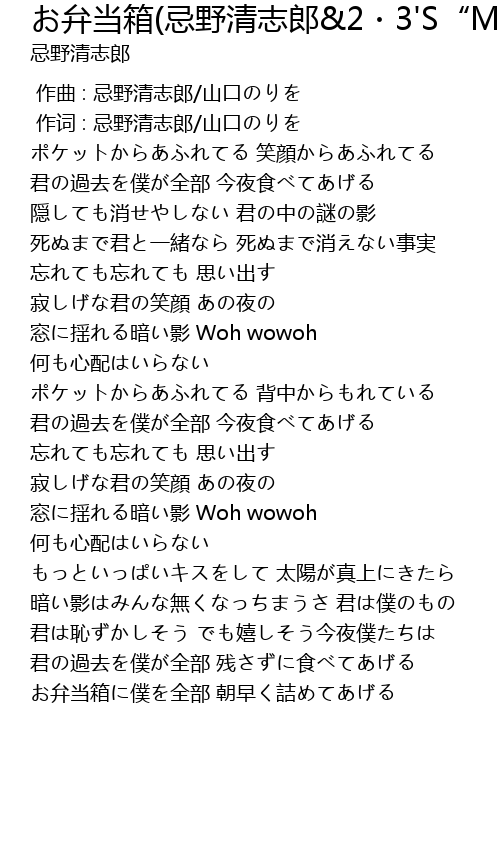 | [03:58.53] | お弁当箱に僕を全部 朝早く詰めてあげる |