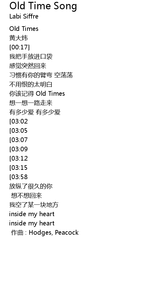 | [00:00.00] | 作曲 : Hodges, Peacock |