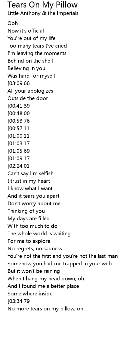 [03:40.46][03:34.79] (No more) tears on my pillow