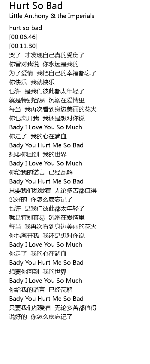| [03:47.49] | Bady You Hurt Me So Bad |
