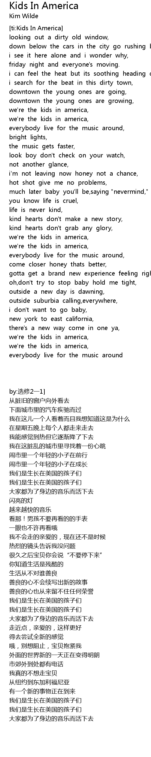 [ti:Kids In America] |
