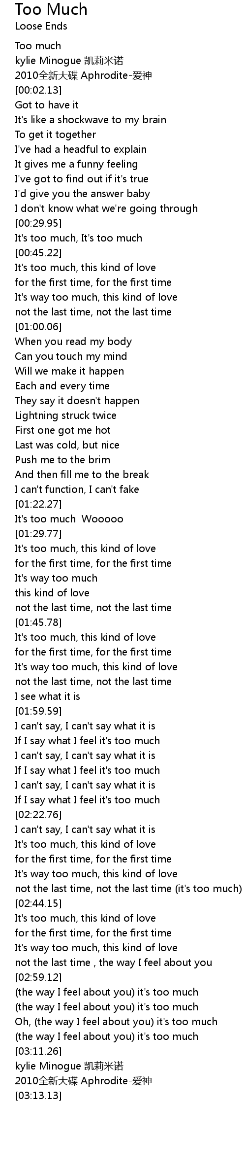| [03:02.37] | (the way I feel about you) it's too much |