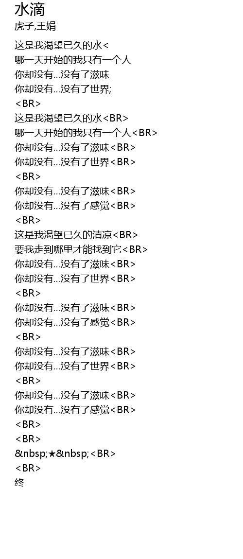 | [02:31.190] | 你却没有...没有了滋味<BR> |