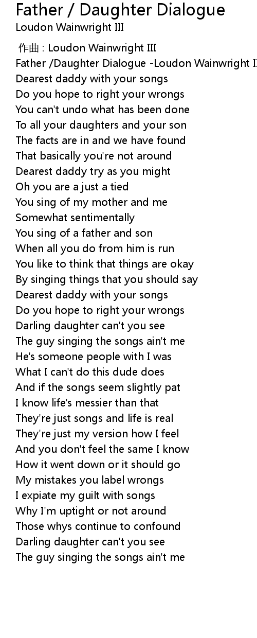 | [00:00.00] | Father Daughter Dialogue Loudon Wainwright III |