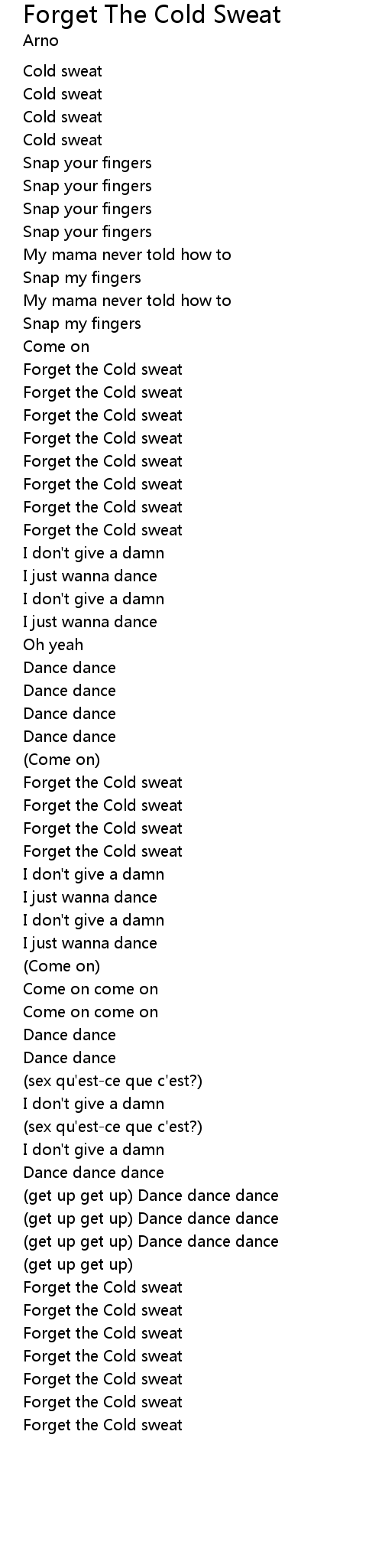 | Forget the Cold sweat | |