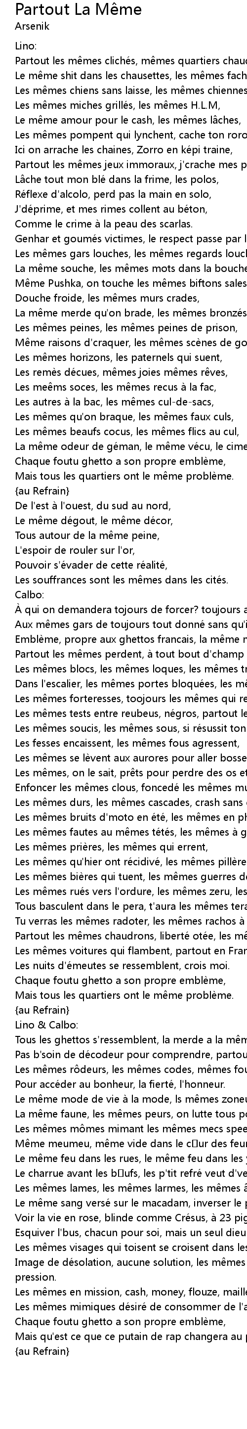 | Partout les m mes cliche s, m mes quartiers chauds, | |