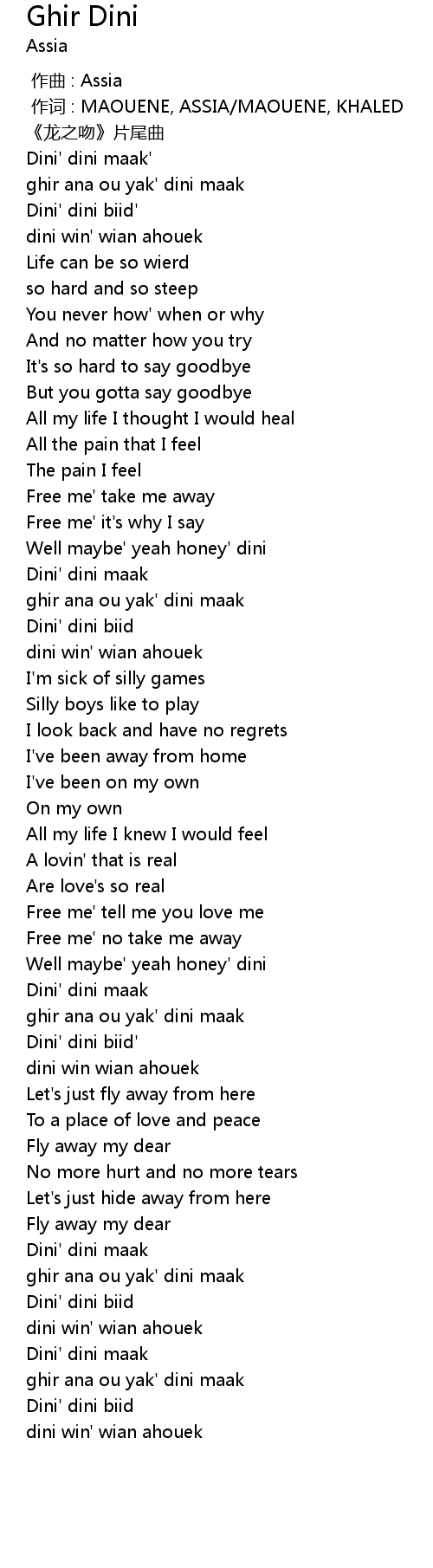 | [00:01.00] | 作词 : MAOUENE, ASSIA/MAOUENE, KHALED |