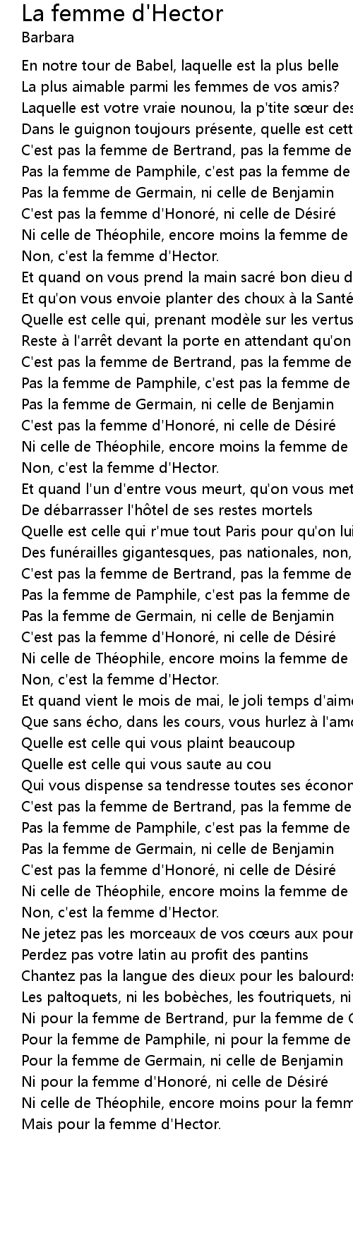 | C' est pas la femme d' Honoré, ni celle de Dé siré | |