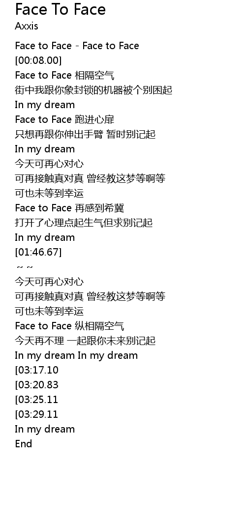 | [00:02.00] | Face to Face Face to Face |