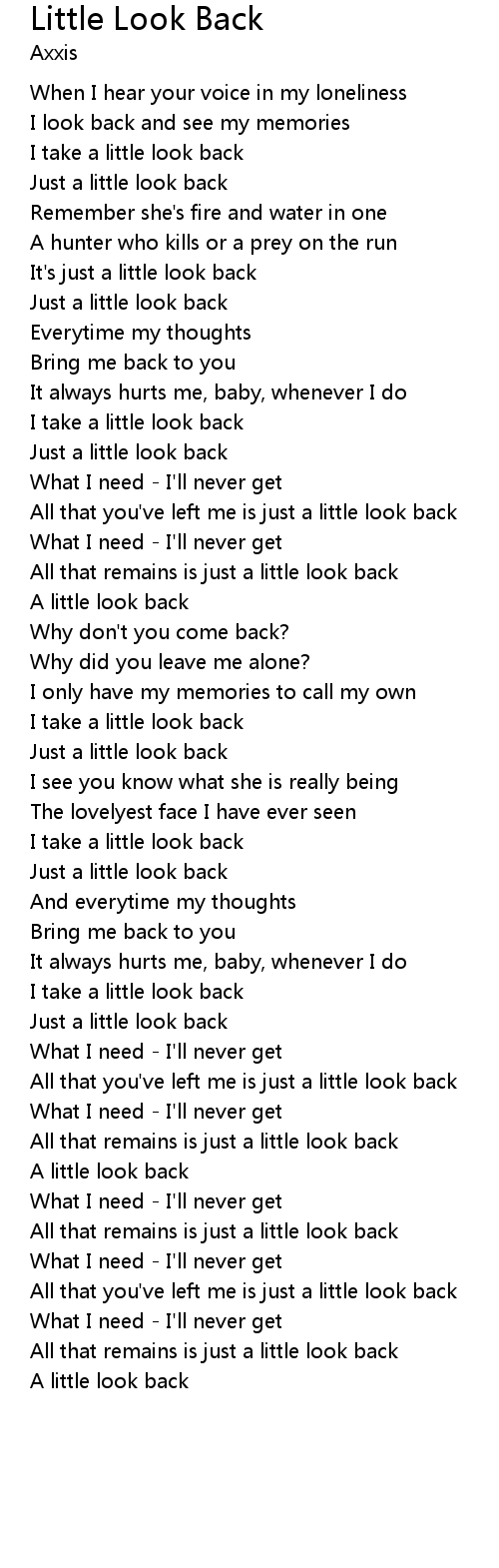 All that remains is just a little look back |