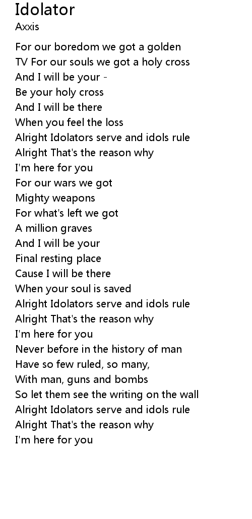 Alright Idolators serve and idols rule |