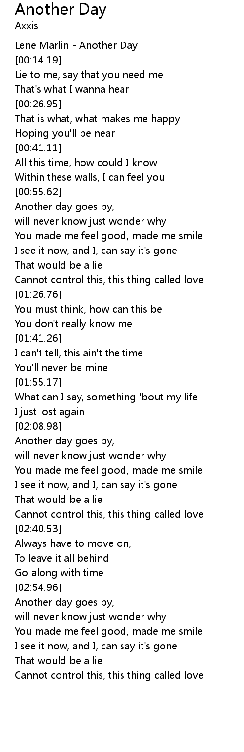 Another day goes by, |