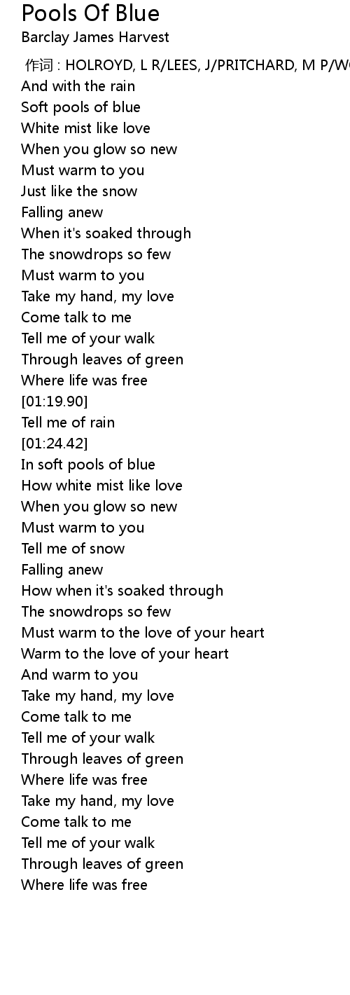 | [00:00.00] | 作词 : HOLROYD, L R/LEES, J/PRITCHARD, M P/WOLSTENHOLME, STUART J |