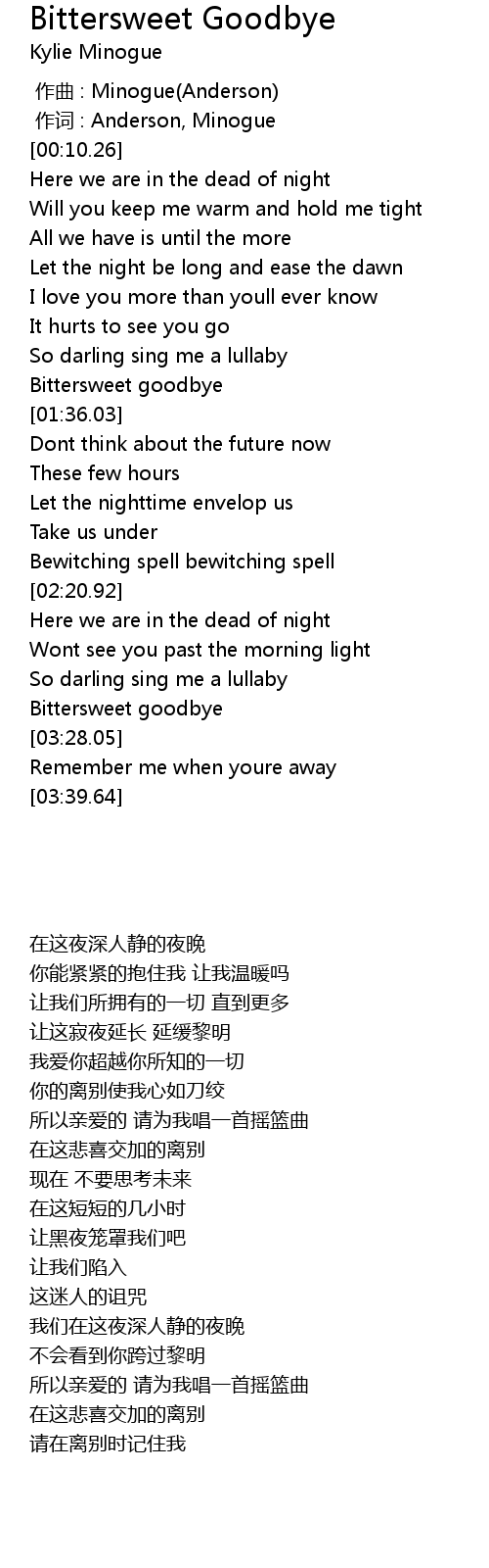 | [03:09.88] | Bittersweet goodbye |