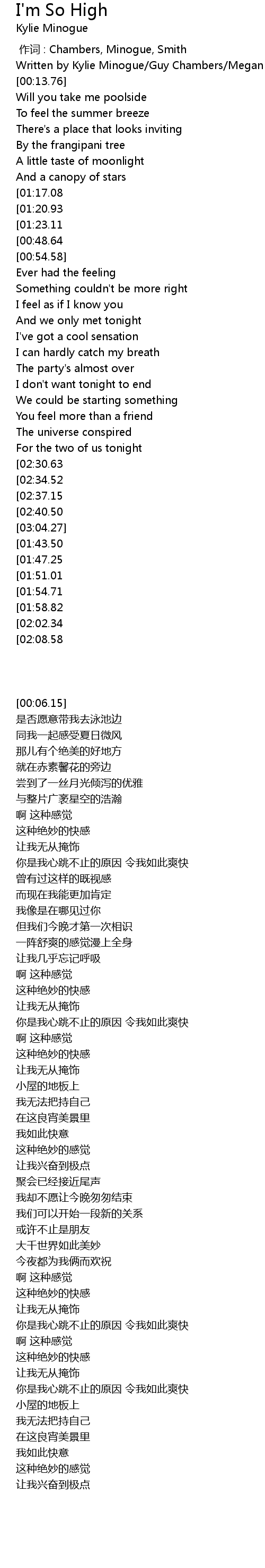 | [00:00.00] | zuò cí : Chambers, Minogue, Smith |