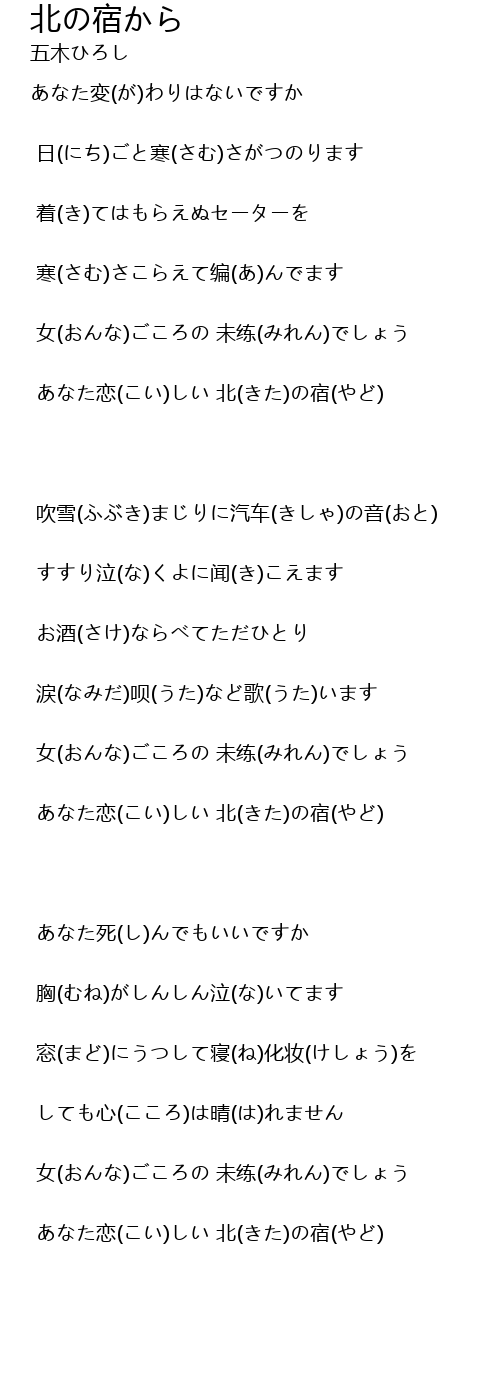 あなた恋(こい)しい 北(きた)の宿(やど) |