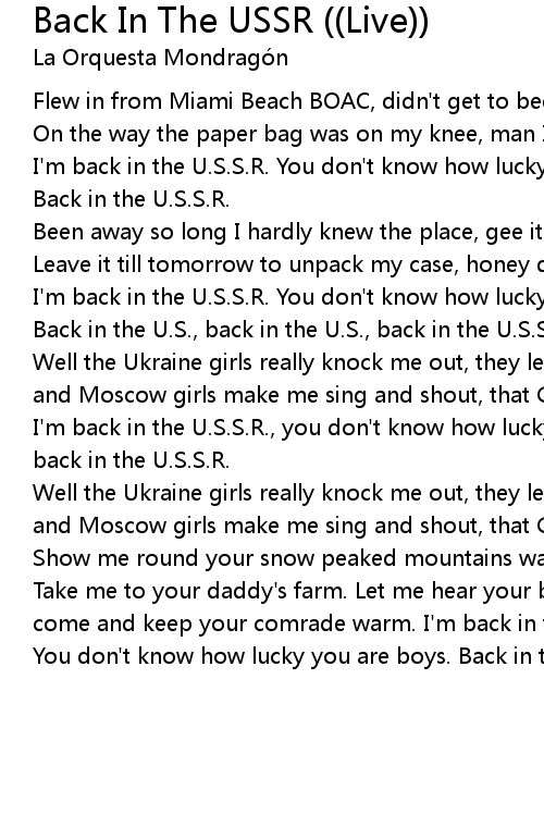 Back in the U.S., back in the U.S., back in the U.S.S.R.