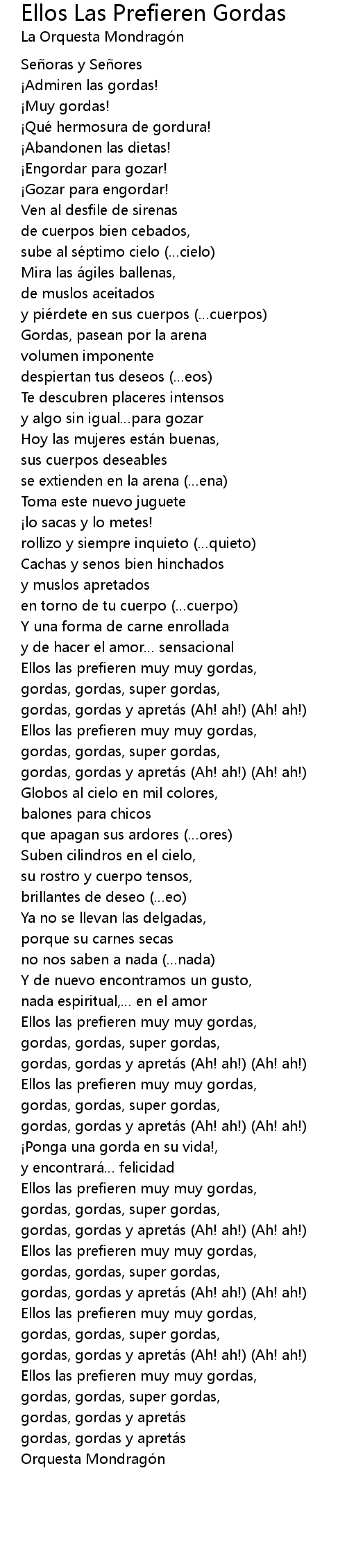 | Ellos las prefieren muy muy gordas, | |