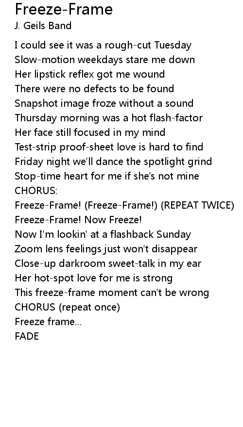 Freeze-Frame! (Freeze-Frame!) (REPEAT TWICE) |