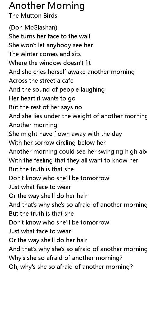 And that's why she's so afraid of another morning |