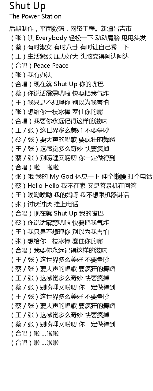 | [00:51.57] | (合唱)现在就 Shut Up 你的嘴巴 |