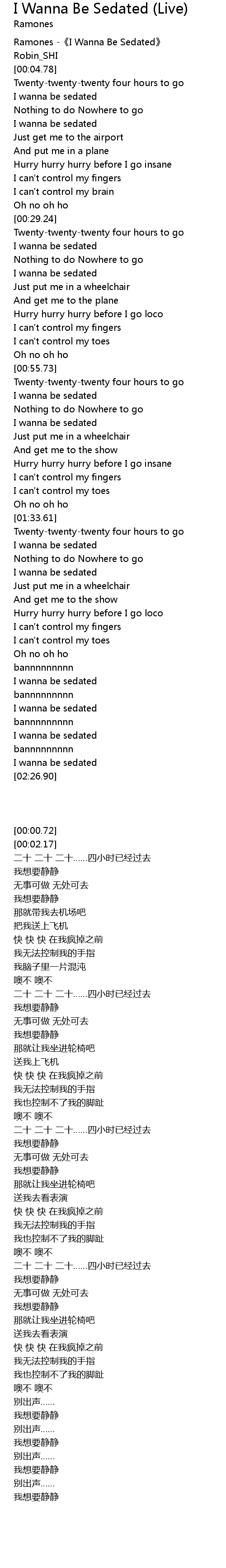 | [00:00.72] | Ramones I Wanna Be Sedated |