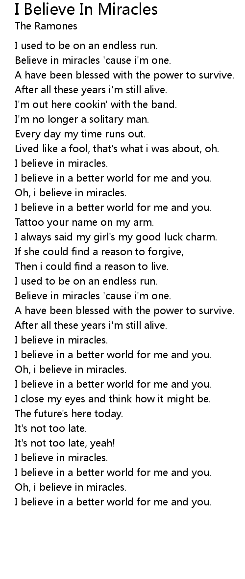 I Believe In Miracles Lyrics