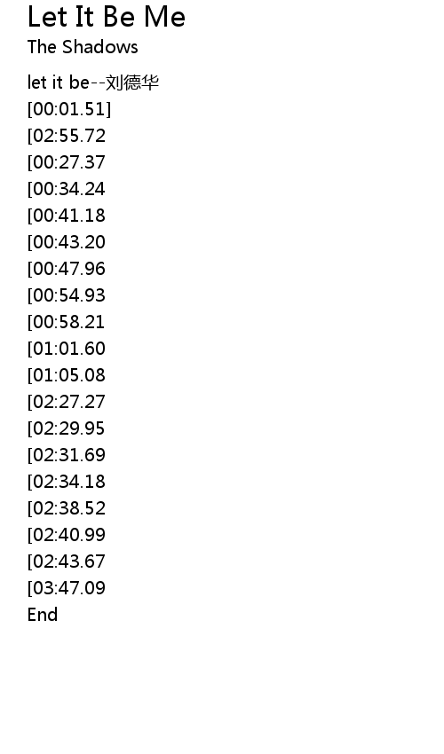 | [03:53.89][03:47.09][02:48.80][01:31.65] | Something seems to tell me let it be |
