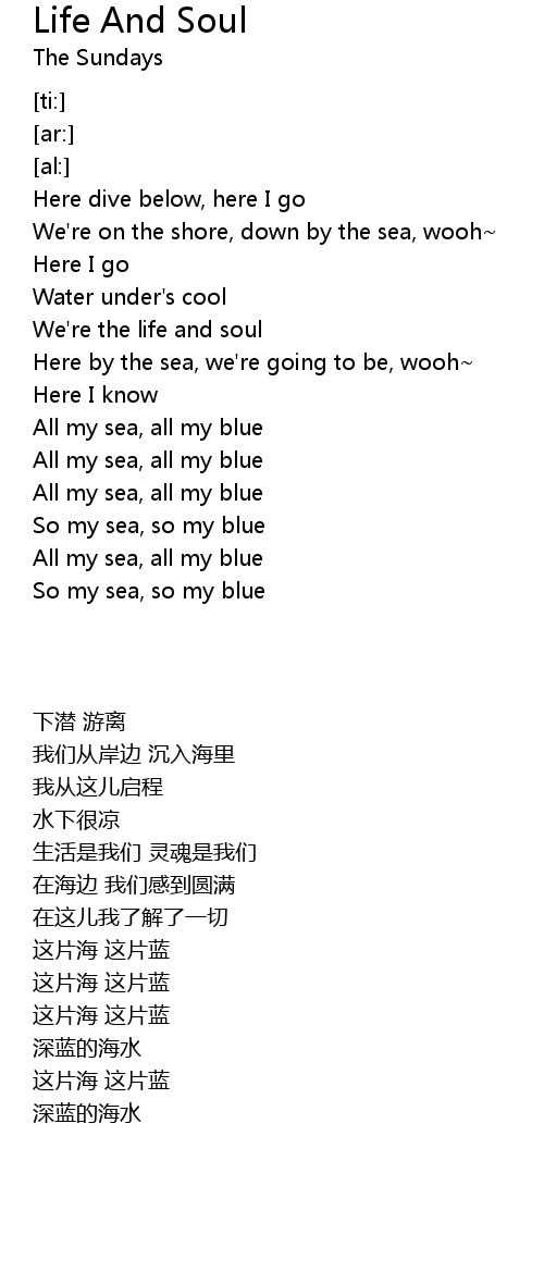| [00:21.52] | We're on the shore, down by the sea, wooh~ |