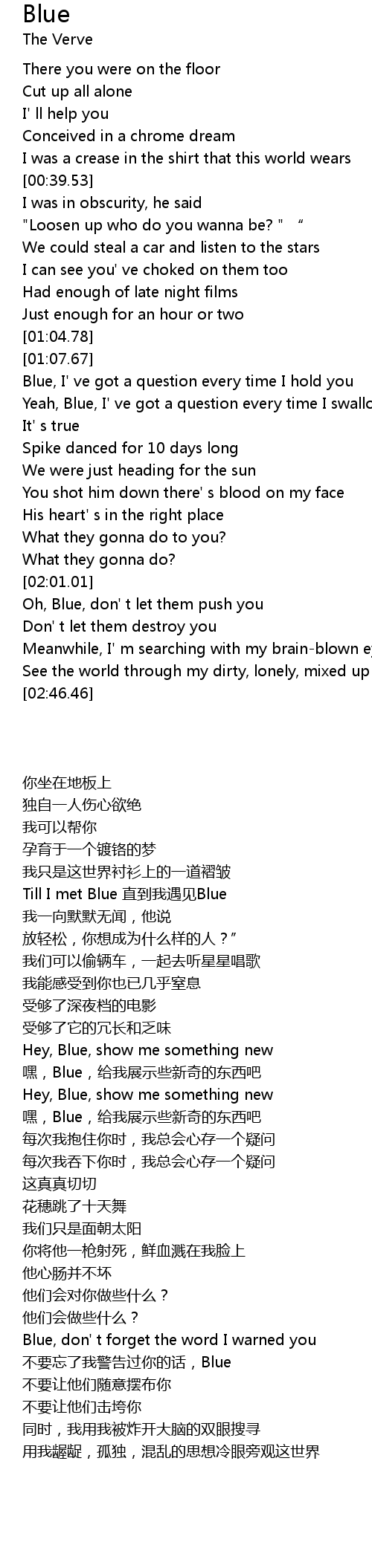 | [02:11.24] | Oh, Blue, don' t let them push you |