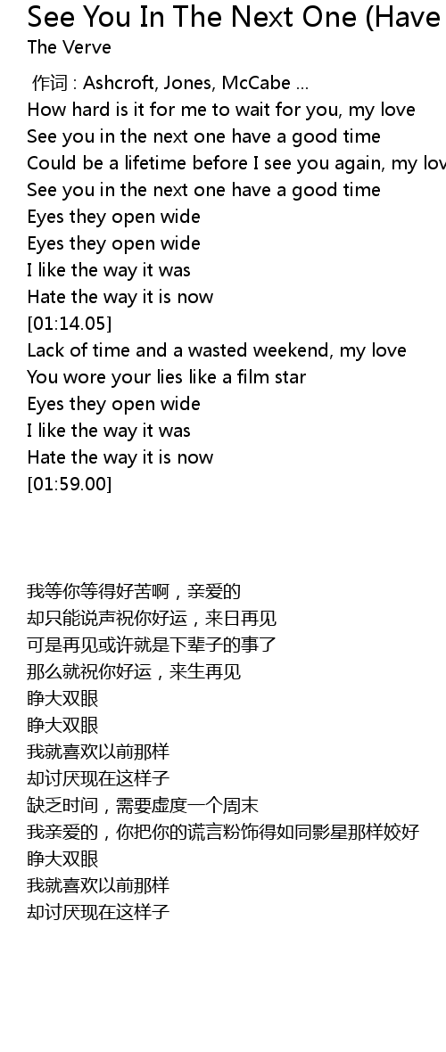| [00:00.00] | 作词 : Ashcroft, Jones, McCabe ... |