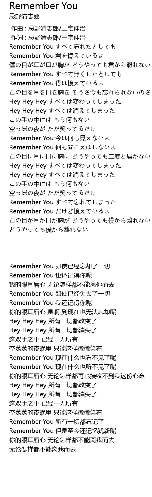 | [03:17.29] | Remember You すべて忘れてしまった |